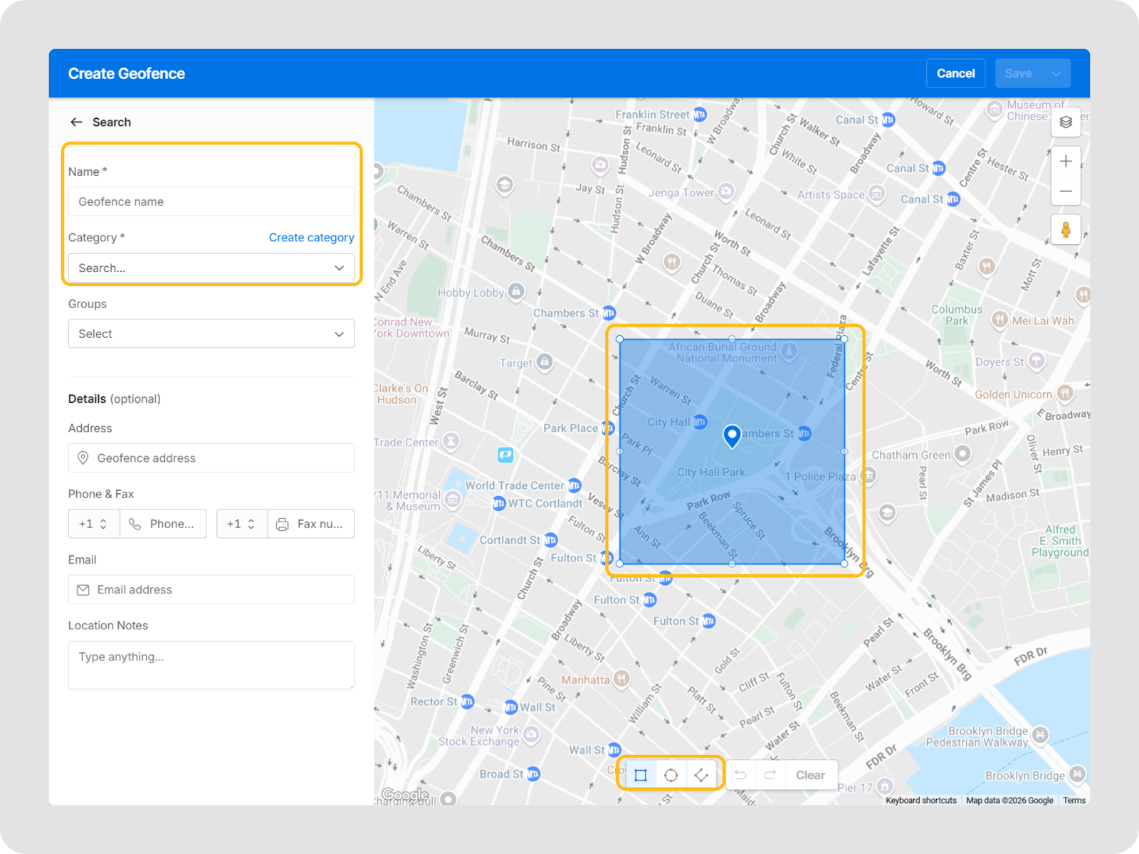 - Changez la forme ou mettez à jour le nom du géorepère, la catégorie et d'autres détails, comme l'ajout d'une catégorie personnalisée.