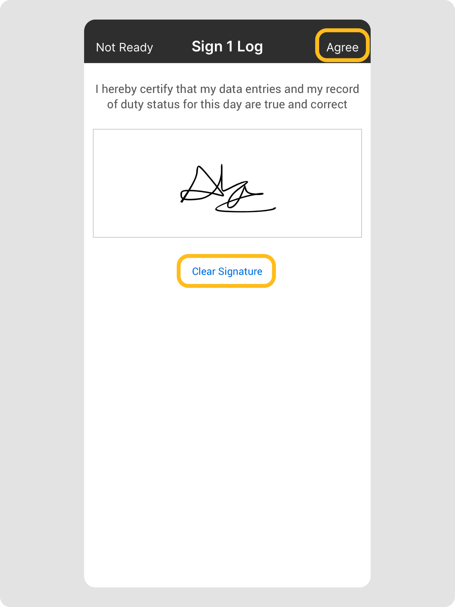 Si vous avez l'onglet Conformité sur l'écran d'accueil de votre application Driver, allez dans Journaux non signés > Accepter.