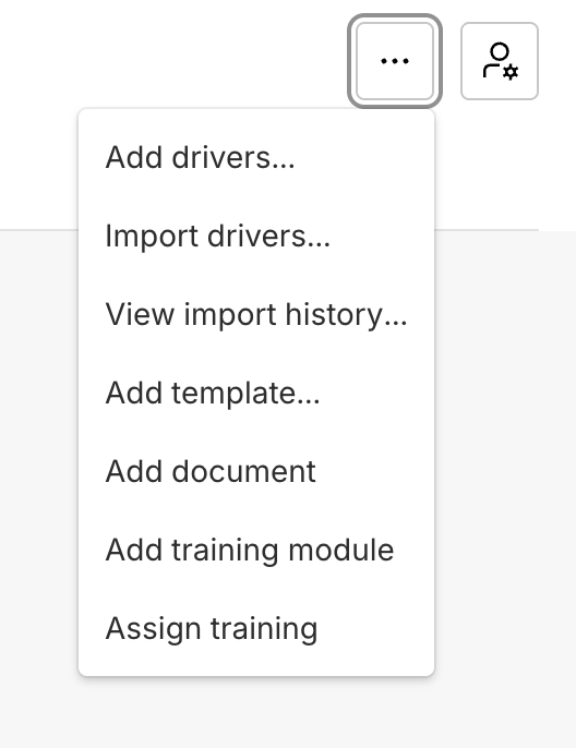 Sélectionnez les conducteurs auxquels vous souhaitez attribuer une formation, puis utilisez Attribuer une formation dans le menu à trois points au niveau de la page.