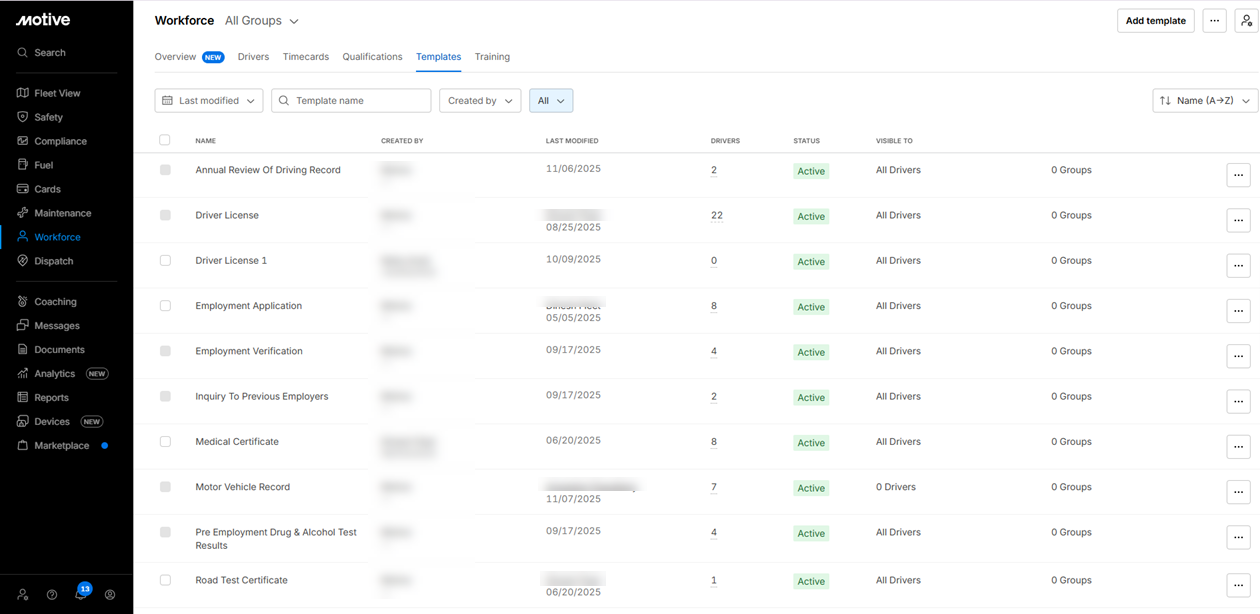 Oui. Les conducteurs peuvent télécharger des documents de qualification via l’application Motive Driver, et les téléchargements peuvent être configurés pour nécessiter l’approbation de la flotte avant d’être ajoutés au dossier DQF.