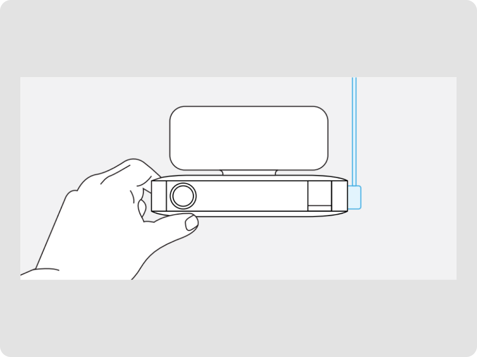- Maintenez la dashcam contre l'emplacement sélectionné avec le câble passant par le dessus.